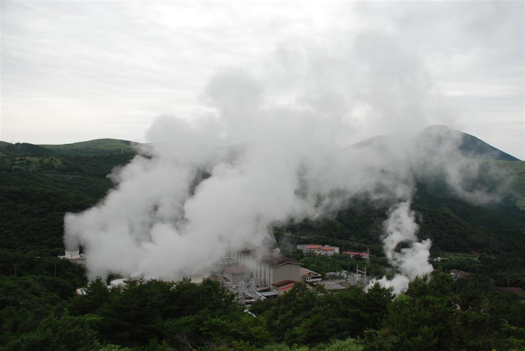 5 juillet 2007. La centrale géothermique d'Hacchobaru, et ses volutes de vapeur.