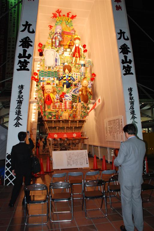5 juillet 2007. Prochainement, un grand festival à Fukuoka, pendant lequel des équipes de grands costauds portent en courant ces bateaux animés à travers toute la ville.