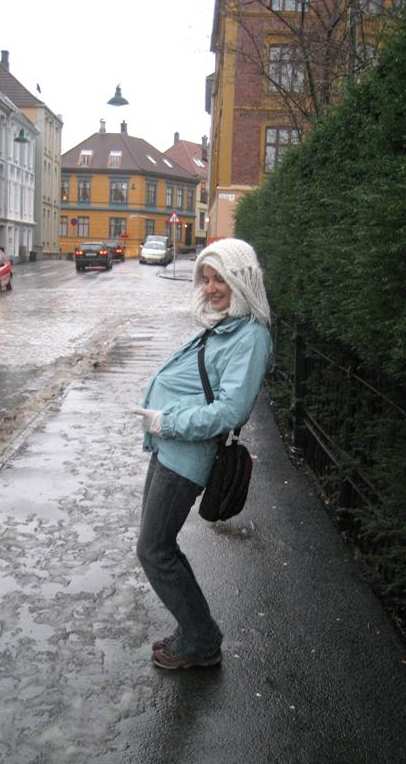 29 janvier 2007. A Bergen, la pluie est verticale dit-on, tant le vent et les corridors des rues lui donnent des ailes qui fasse pour autant peur à Elodie dont le ventre rebondi abrite notre joujou numérique sensé faire de jolies photos et qui parait-il n'aime pas trop la pluie ... |
