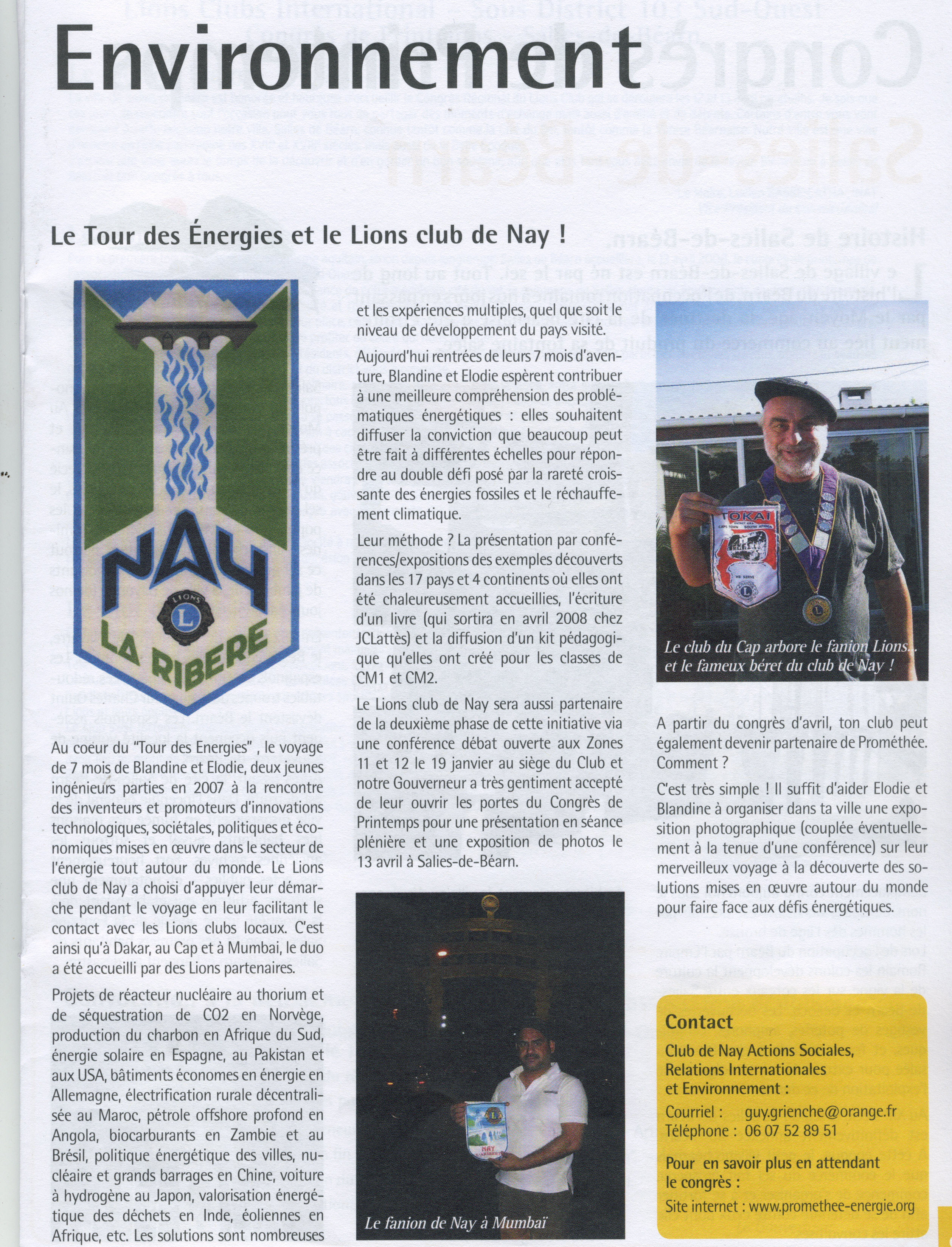 On parle de nous dans le magazine du District Sud-Ouest du Lions club International !